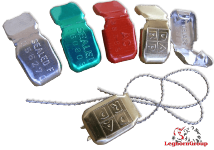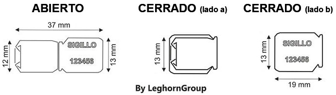 Precinto metálico en aluminio tipo clip de cierre manual. Auto bloqueante. Se puede cerrar con: alambre espiralado, cable acero, hilo nailon, cordel.